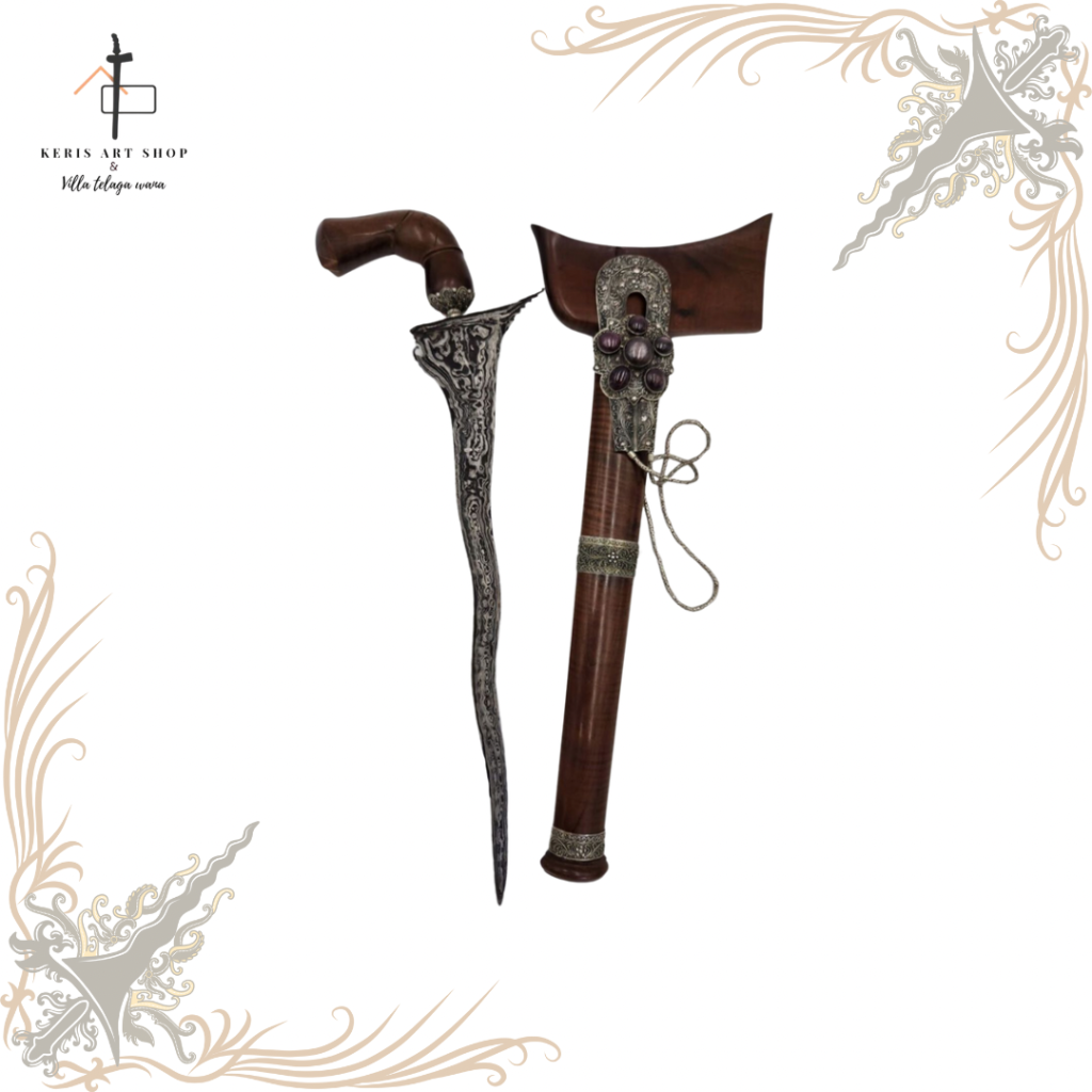 A keris with three curves often used in ceremonies as a spiritual shield. Meaning: Represents courage in facing life’s early challenges and fundamental spiritual strength.